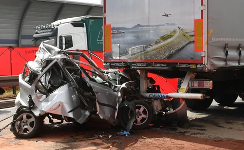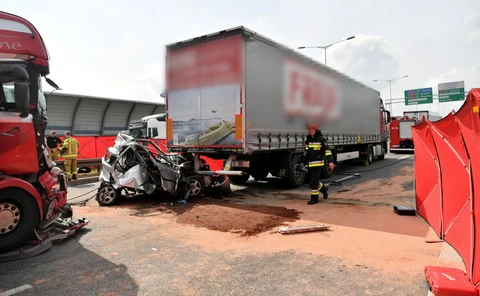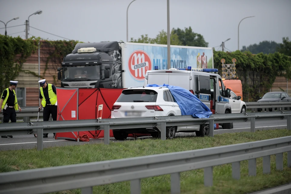 Chwilę później jadący w tym samym kierunku kierowca chłodni nie wyhamował i.
